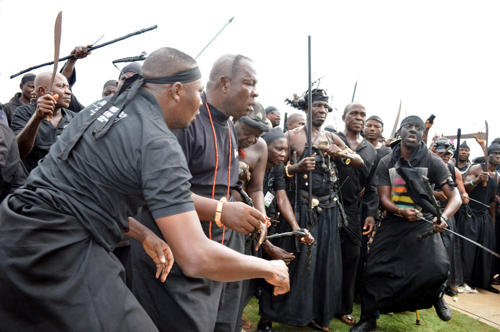 Some traditionalists perform some traditional rites at the coronation of the new Oba of Benin on Thursday (20/10/16). 7865/20/10/2016/Ernest Okorie/BJO/NAN