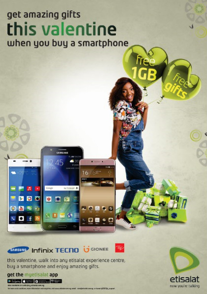 Etisalat Nigeria has announced that its special valentine gift offer will be available till March 30, 2017.