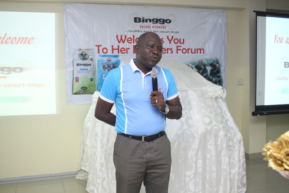 National Sales Manager (Edibles), Grand Cereals Limited, Alexander Ikani giving the welcome address at the Binggo Dog Food Breeders’ Forum in Lagos.
