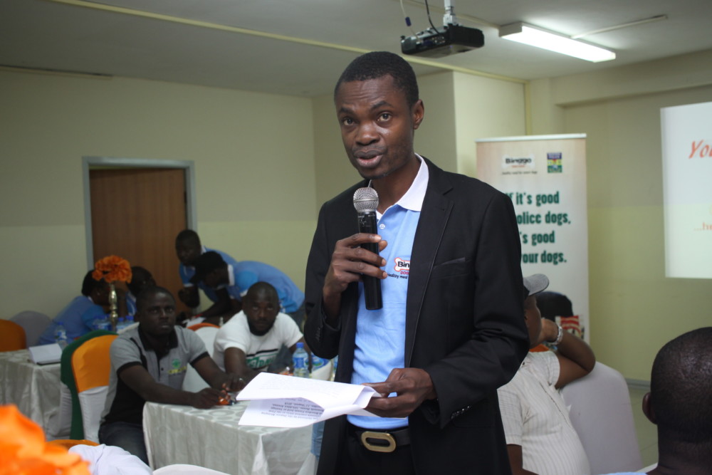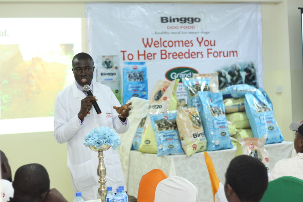 Head of Animal Nutrition, Grand Cereals Limited, Dr. Sam Etop giving a pep talk at Binggo Dog Food Breeders’ Forum in Lagos.