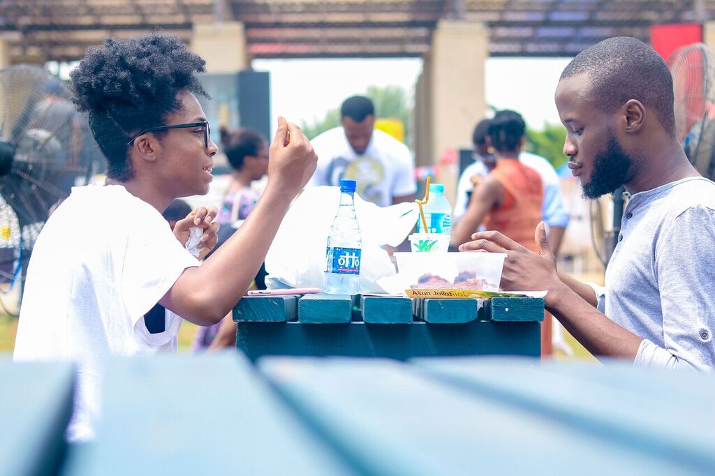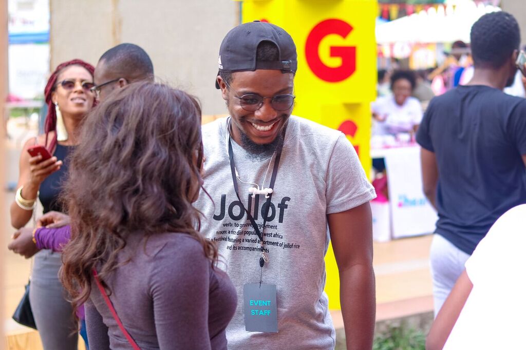Jollof and Other Things went down last Sunday at a new location, Muri Okunola Park, and we had a successful day. The weather was warm but not scorching, breezy but not rainy, and we had a full house. It was a colourful day at the festival, with Maggi’s vibrant yellow blocks stacked up in the venue, motivational Jollof banners floating in the wing, and our colourful trademark Jollof signs wrapping around the entire venue.