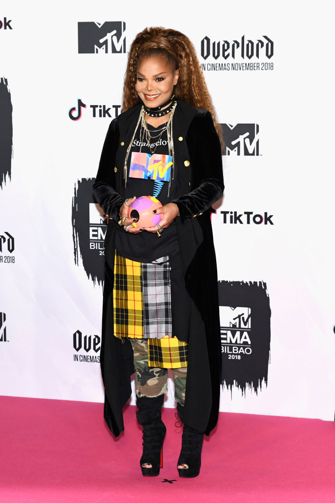 BILBAO, SPAIN – NOVEMBER 04: Janet Jackson poses with the Global Icon Award in the Winners room during the MTV EMAs 2018 at Bilbao Exhibition Centre on November 4, 2018 in Bilbao, Spain. (Photo by Carlos Alvarez/Getty Images for MTV)