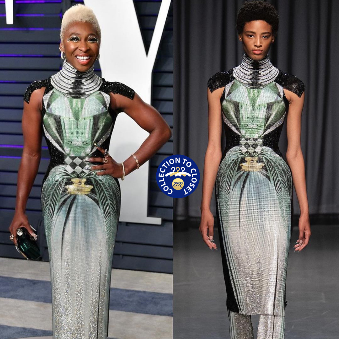 UK actress and singer Cynthia Erivo is one of such women worth referring to as a powerhouse. The Tony, Emmy and Grammy Award winner was recently spotted on the red carpets on the Vanity Fair’s Oscars Party where she served futuristic fashion and looked absolutely ethereal in a crystal bottle dress from Mary Katrantzou’s S/S 19 collection.