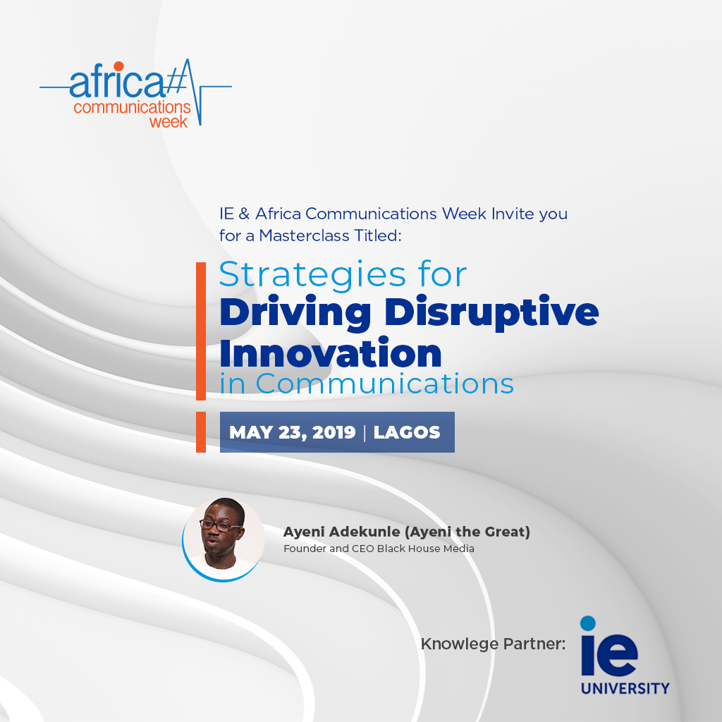 Africa Communications Week in partnership with IE University is hosting a Masterclass featuring Public Relations Expert Ayeni Adekunle, Founder of BlackHouse Media. The Masterclass which takes place on Thursday, May 23rd, 2019 in Lagos is part of a series of communication events taking place in Nigeria and across Africa. Africa Communications Week is the premier gathering for communications professionals and thought leaders looking to impact the current narratives on Africa.