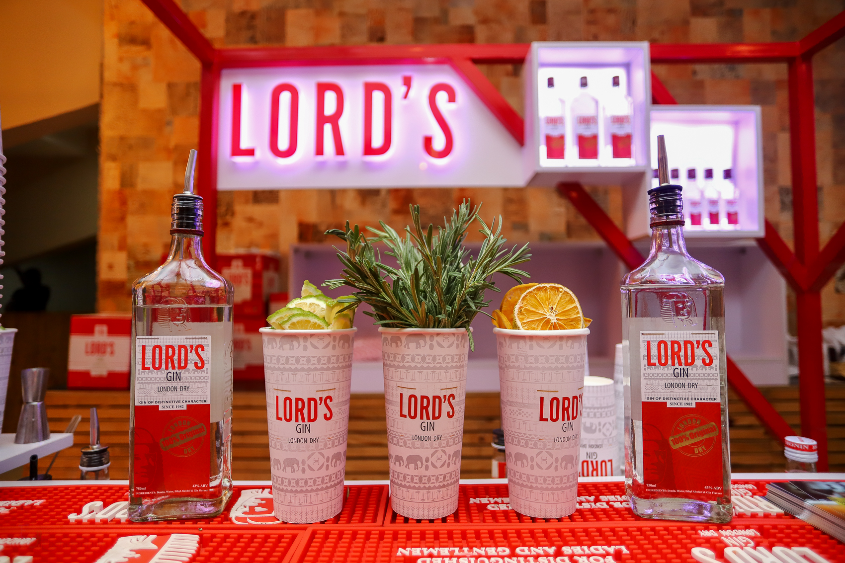 Stationed strategically across the entrance to the event’s lobby was the illuminated Lord’s bar which held bottles of the Lord’s Gin brand. At the entrance to the bar, guests were greeted by Lord’s Gin ushers, who shared menu cards of the evening’s exclusive cocktail mixes by talented mixologists who wore specially branded aprons. Guests couldn’t get enough of these special blends served in well thought out environmentally friendly paper cups and straws.