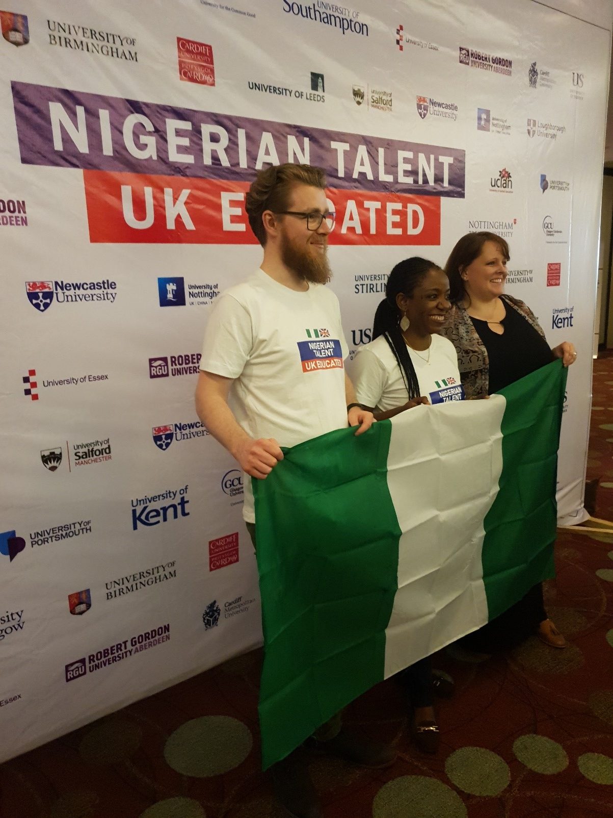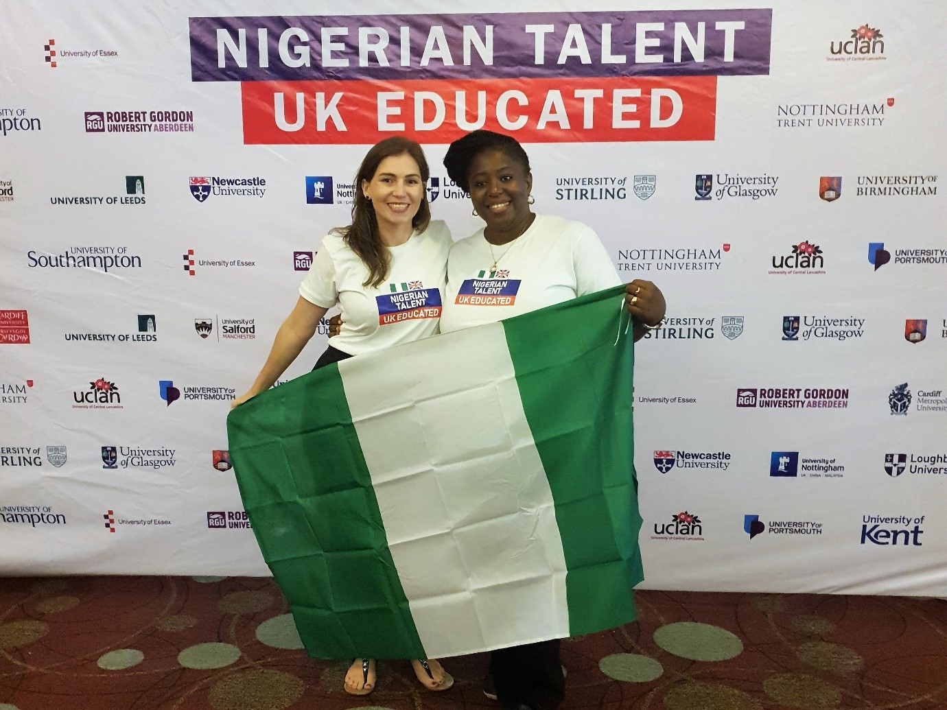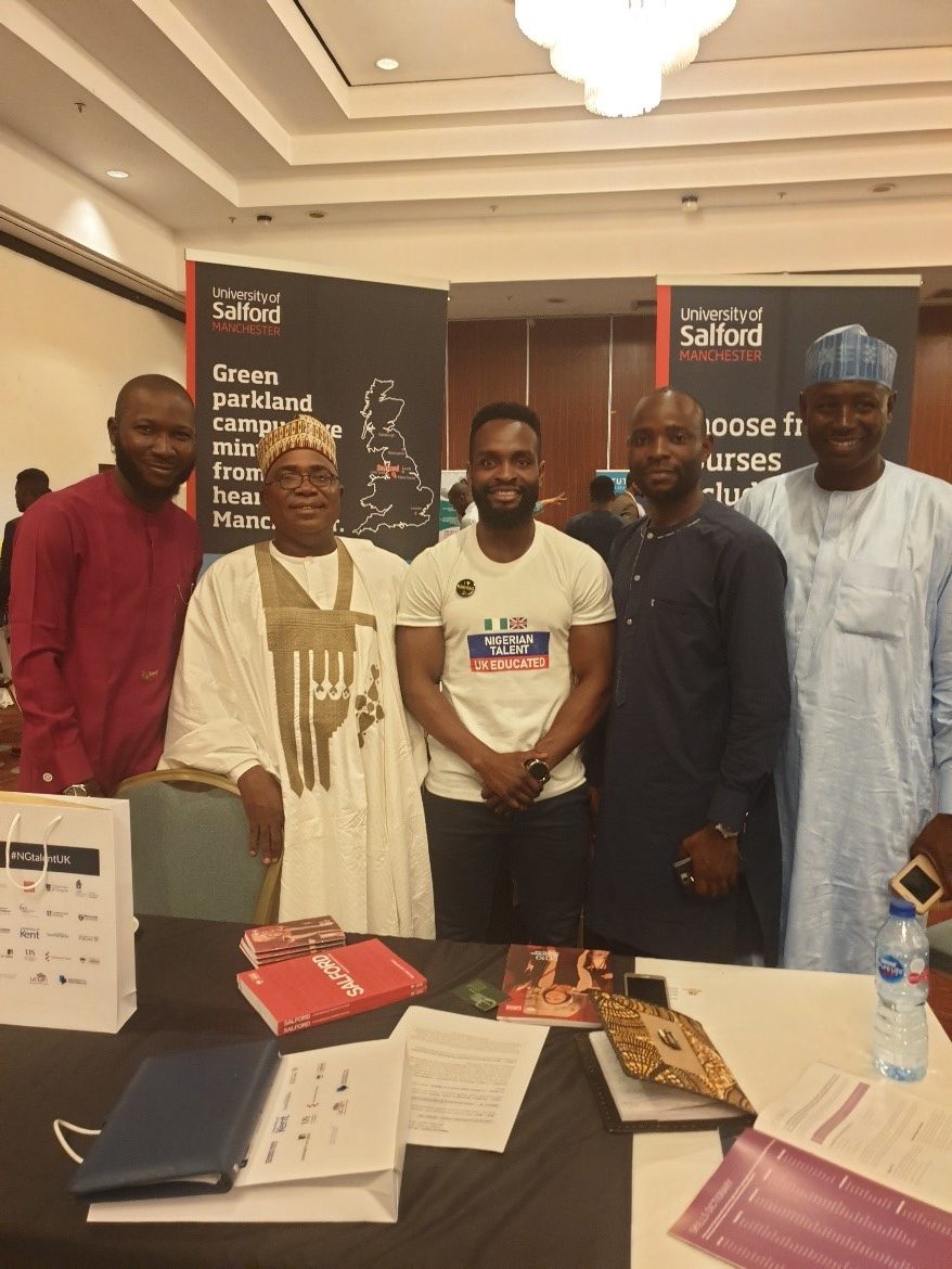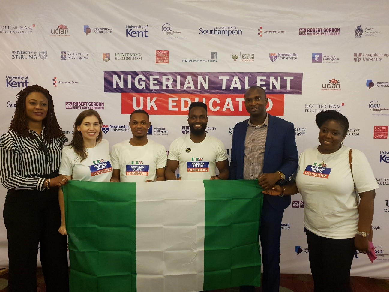 UK university representatives worked together to organize the event. Back row: Sergine Monple (University of Central Lancashire, Annabel Mitchell (Nottingham Trent University), Adebisi Adekola (University of Salford), Oyedapo Oyeyemi (University of Leeds), Alicia Butterfield (Loughborough University), William Kelly (University of Glasgow), Tom Williams (UCLAN), Francis Ojo (University of Birmingham), Pamela Armstrong (University of Glasgow), Alexa Jones (Cardiff University), Chinelo Konwea (University of Portsmouth), Fern Williams (Cardiff Metropolitan University), David Lennon (Newcastle University)Front row: Ifeanyi Udofia (University of Sussex), Emma Tarrant Tayou (University of Nottingham), Jenny Hyde (University of Portsmouth), Ajoke Olakunle (University of Glasgow), Claire Grant (University of Stirling), Yusuff Kaffo (University of Salford), Melissa Gibson (University of Southampton), Deve Omiunu (Cardiff University), Charlotte Greenwood (University of Kent).
