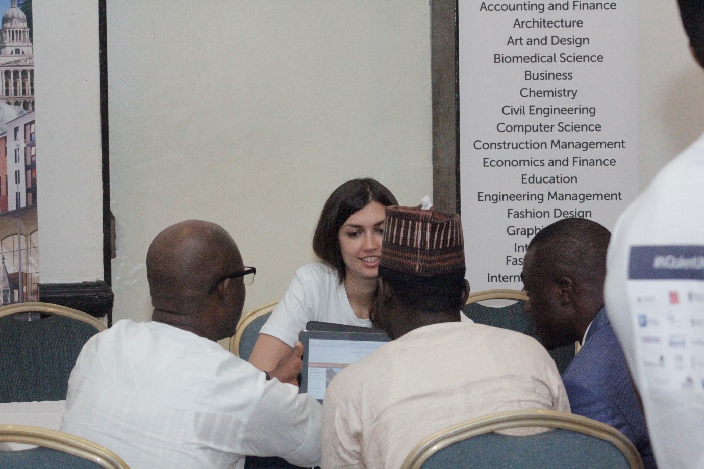 Alongside the one to one interactions, former UK graduates shared useful insights with fair attendees on topics such as developing a career in the legal sector and working within Public Health. Aramide Abe (alumna of University of Nottingham) brought Naija Startups to the event, offering both ongoing advice throughout the fair and a master class on entrepreneurship and the business start-up process aimed at helping those looking to set up their own businesses in the future.