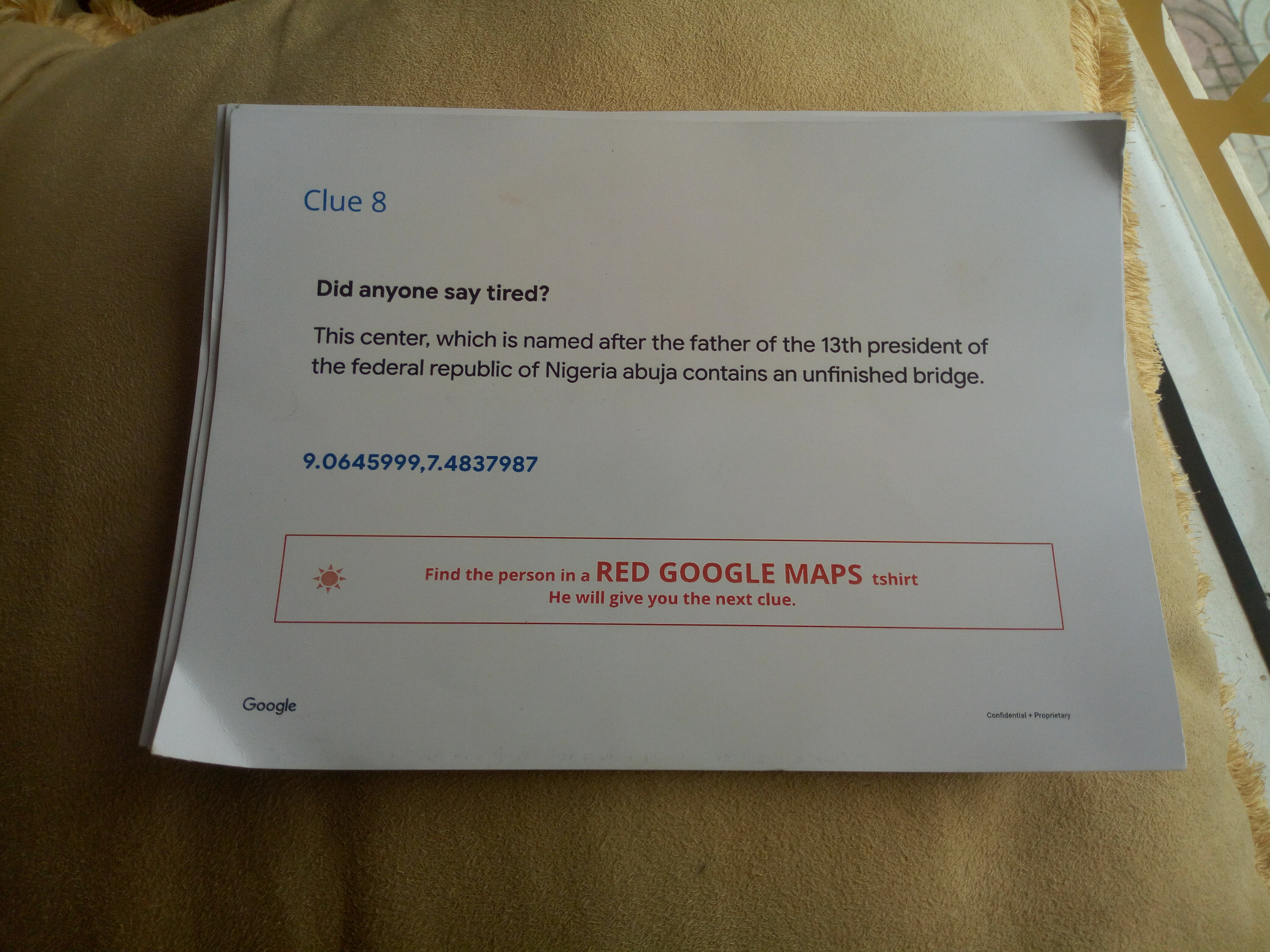 This was my favourite part of the tour as I got to do a scavenger hunt for ten major tourist spots in Abuja. Various clues were placed at different locations, and I was to find where the next spot was by solving each clue. It was like a scene out of ‘Fast and Furious.’ I completely enjoyed myself.
