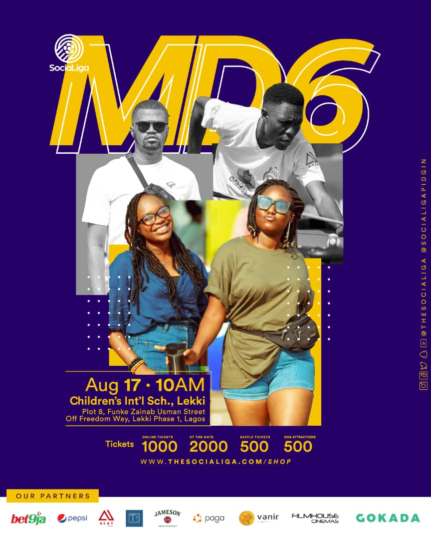 SociaLiga MD6 is a sports and social gathering event organized by The SociaLiga and is set to be held on the 17th of August 2019, at Children International School, Funke Zainab Crescent, Lekki Phase one, Lagos.