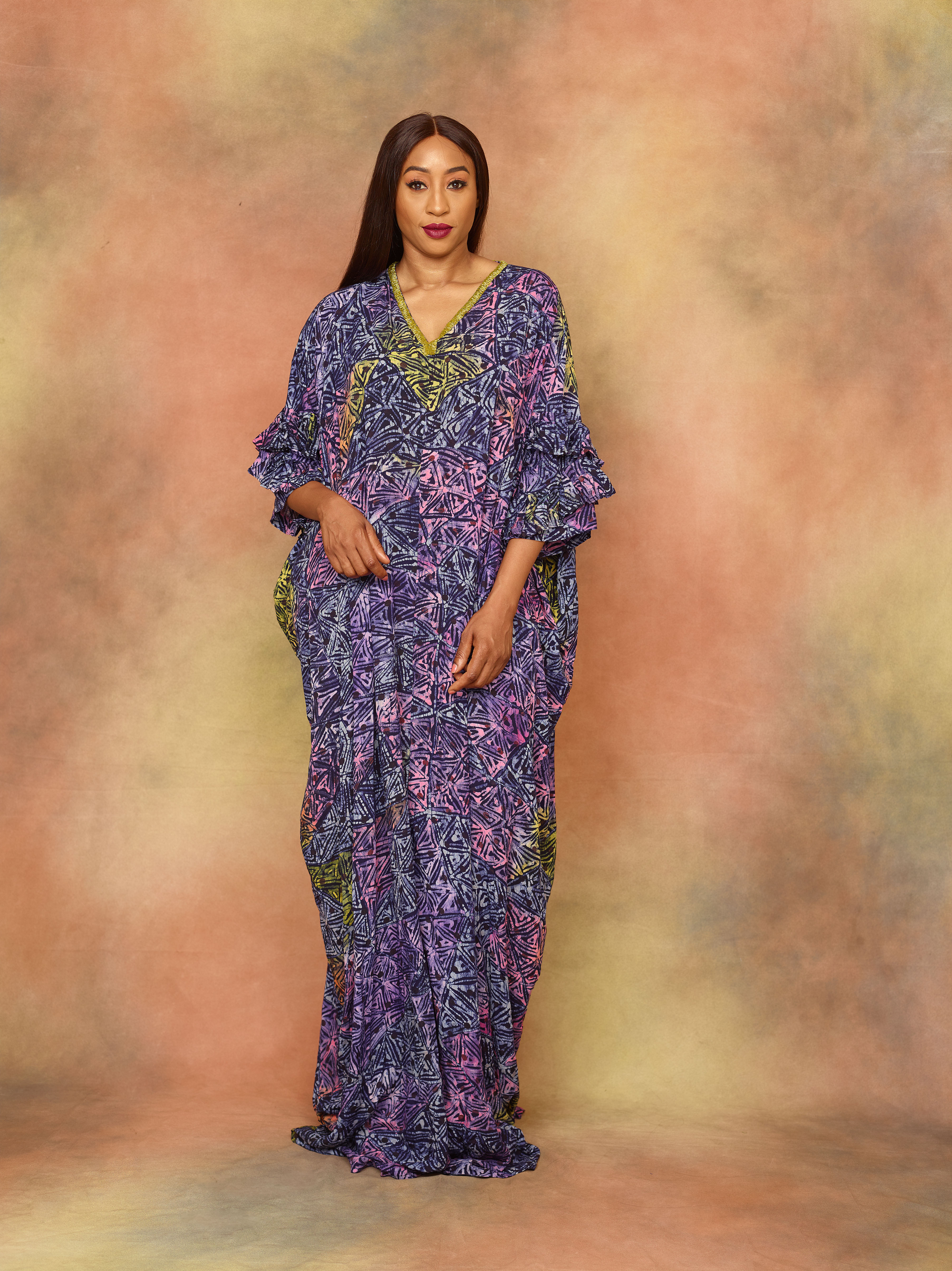 “The Adunni Collection, was named after my aunty who passed away. She was an inspiration to me. She was strong but very feminine, hard but still soft and caring. Her oriki was Adunni, which means “A beautiful child has come to this land”. She depicted the many faces of a woman, her lifewas somewhat always a sacrifice for us all. She always put everyone else before herself and this embodies the essence of a woman. It was always so enamouring as she still put up a show : a glamorous, happy and effortless show.To celebrate her, I thought about a fabric to epitomize her essence and my love for Adire, came up. I’ve loved Adire for a very long time and it’s always been interesting to me. The uniqueness, originality and versatility of the prints excites me. The bright colors and the way the fusion of the prints and patterns come together is so beautiful.Adire, for me, depicts not only my aunty , but the essence of a woman : her strength, femininity, and delicate nature.”Fashion and Style guru, Veronica Odeka, serves as the perfect muse for The Adunni Collection as she represents the Funke Adepoju woman in many ways than one. A mother, an entrepreneur, a wife – a strong willed woman, whose style is only a glimpse into her beautifully complexed world.The Adunni Collection stays true to the Funke Adepoju aesthetic. It is filled with frills, fringed and of course, the famous Funke Adepoju fit