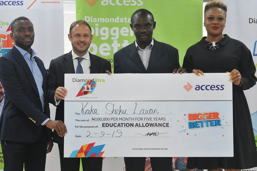 L – R : Jacob Danjuma,Head, Consumer Liability products; Robert Giles, Head, Product Insights and Capabilities, all of Access Bank Plc; Kaka Lawan DiamondXtra Season 11 quarterly draw winner; and Chioma Afe, Head, Retail Marketing and Analytics, Access Bank Plc during the DiamondXtra cheque presentation ceremony held in Lagos recently.