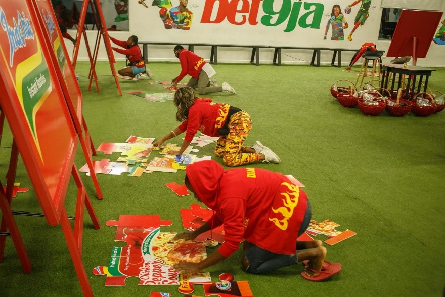 To put all the pieces of the day together, the Indomie in BBN task was in three stages; first, they were given boxes filled with a jigsaw puzzle. They had to pick an Indomie-variant-themed jigsaw puzzle pack and arrange the puzzle pieces on a board with a countdown timer.