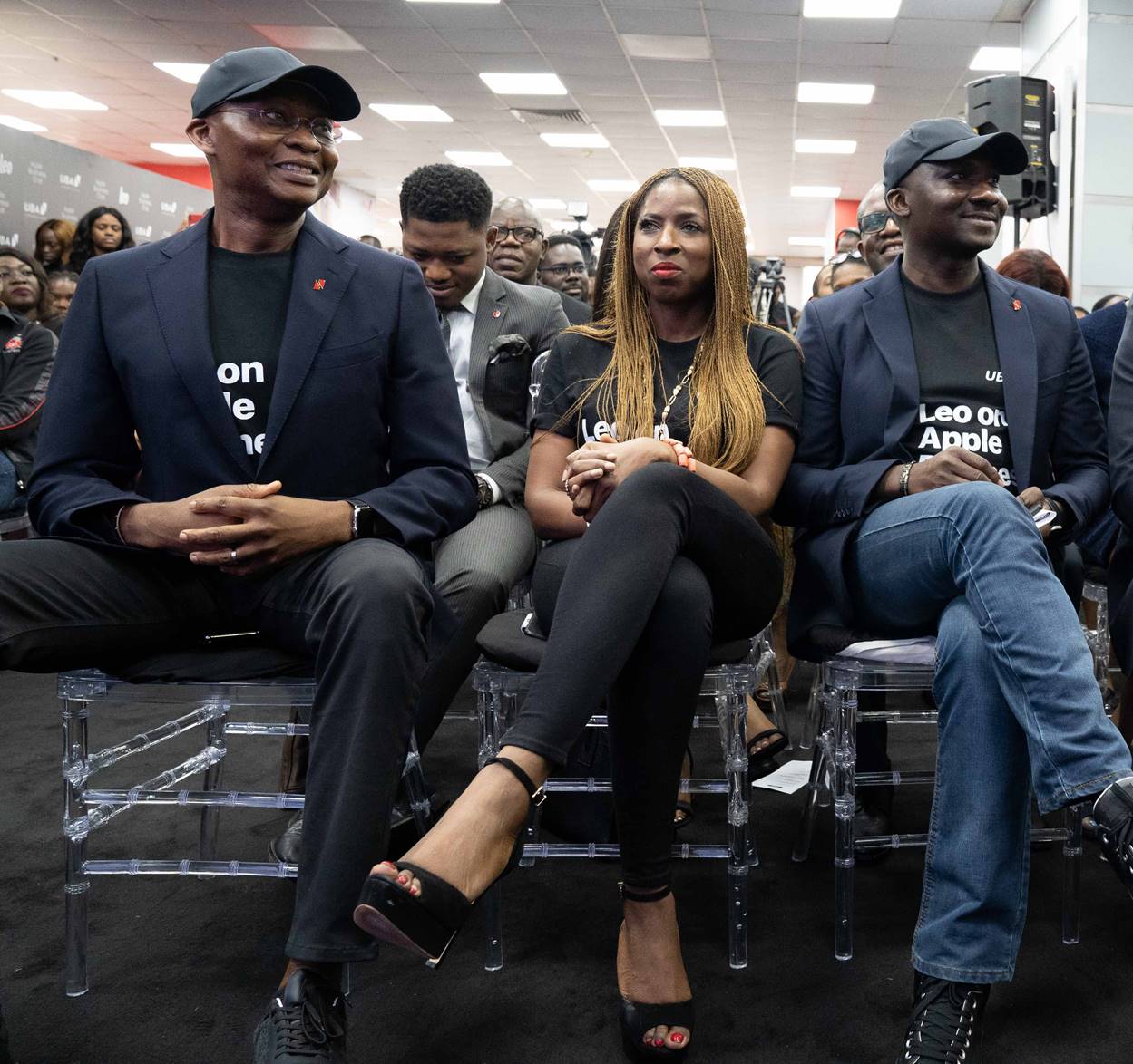 L-R: Group Managing Director/CEO, United Bank for Africa(UBA), Kennedy Uzoka; Group Head, Marketing, UBA, Dupe Olusola; Group Head, Online Banking, UBA, Austine Abolusoro, during the launch of LEO, the Bank’s chatbot on banking, on Apple Business Chat –IPad and IPhone, held at UBA House, Marina, Lagos on Thursday.