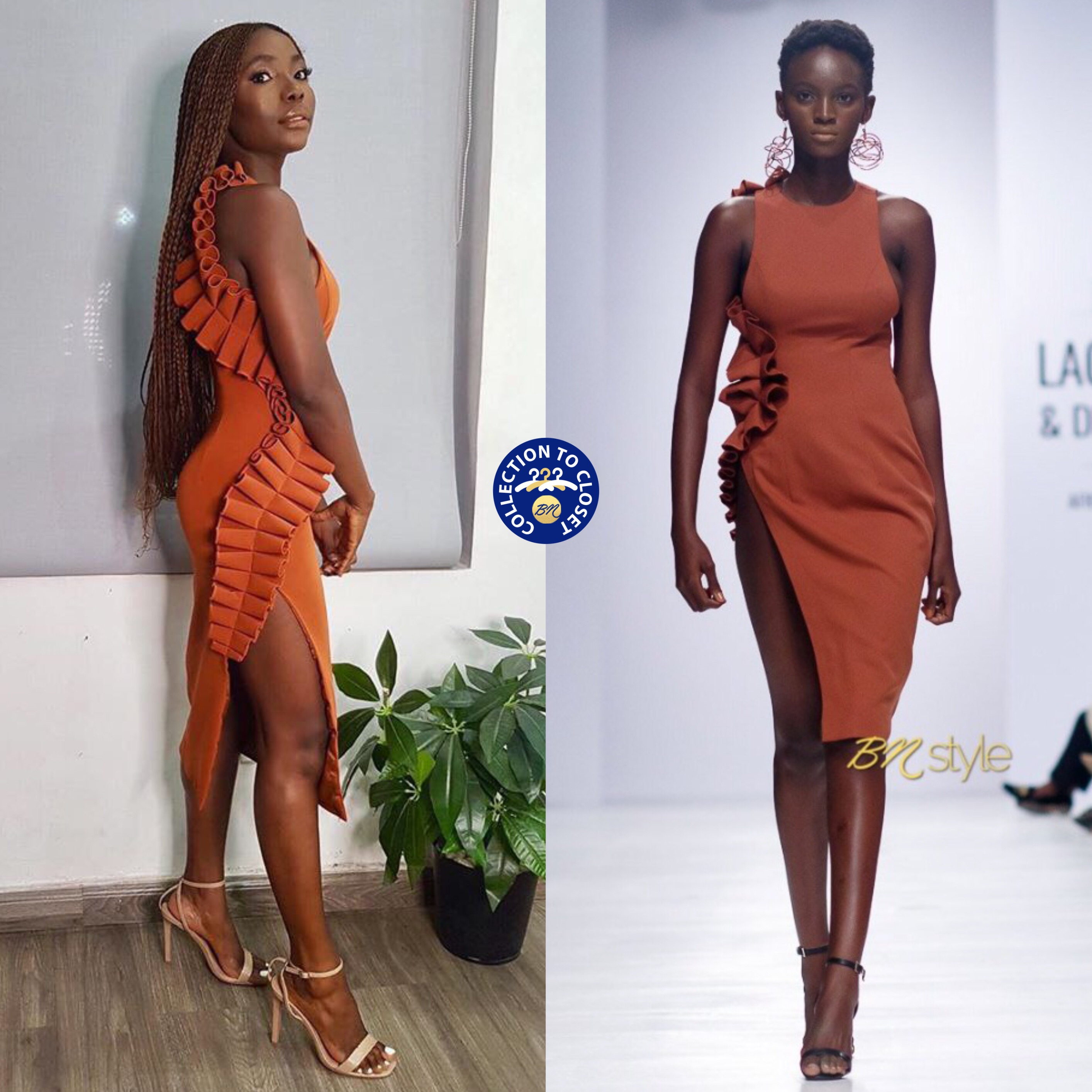 On today’s edition of BN Collection to Closet, PR maven Bidemi Zakariyau Akande has our undivided attention in this Andrea Iyamah dress. To a Farouz event over the weekend, the LSF|PR CEO rocked the brown thigh-high slit dress from the Nigerian brand’s Spring/Summer 2018 collection.