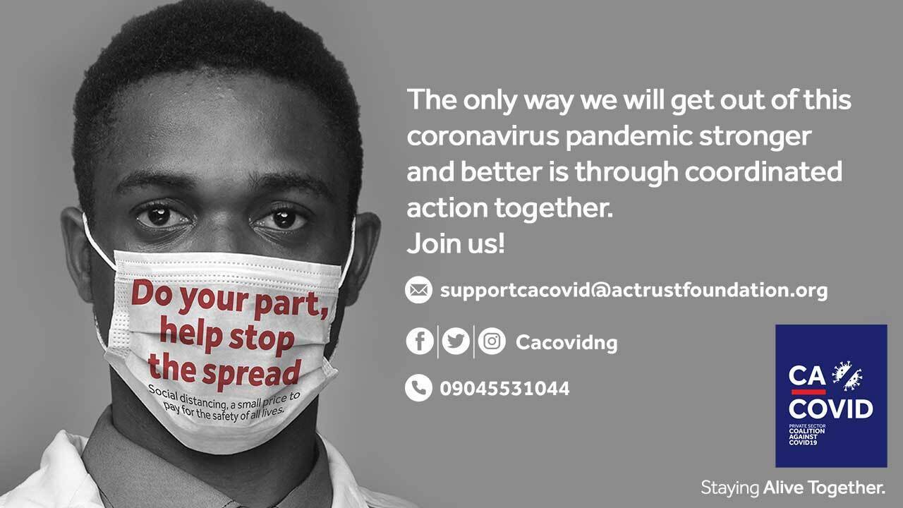 This message has been brought to you by the Private Sectors Coalition Against COVID-19 (CACOVID), a group that is working hand in hand with the NCDC to eradicate coronavirus in Nigeria. To play your part in the support of this worthy cause, please contact CACOVID via phone on 09045531044 or email at [email protected] and also follow @cacovid on Twitter, Instagram, and Facebook for daily updates.