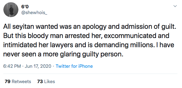 Several Twitter users state that when Seyitan first made the allegations, all she was looking for was an apology and acknowledgment of the alleged wrongdoing.