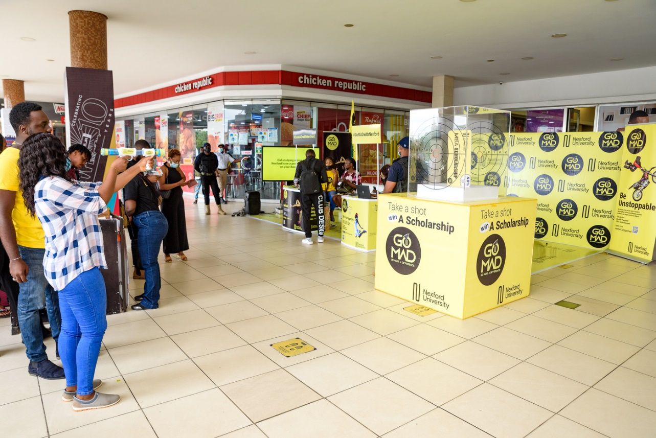 A major part of the live activation event held at Ikeja City Mall was the “Take a Shot” competition which offered two winners a chance to win 50% MBA/BBA scholarship to study with Nexford university. A participant Emmanuel Ejemuta hit the target for the Take a Shot competition, winning a 50% MBA scholarship to study with Nexford University.