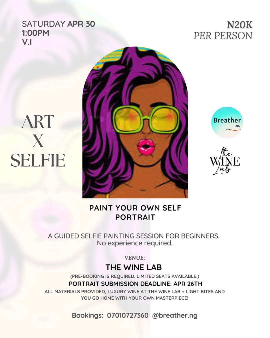 The Temple Company wants you to end the month of April with the best vibes at their Sip and Paint event. There’d be small chops, drinks and of course, the creation of some amazing artworks. It’s the bibe you don’t want to miss out on. The fee is 7500 Naira per head.
