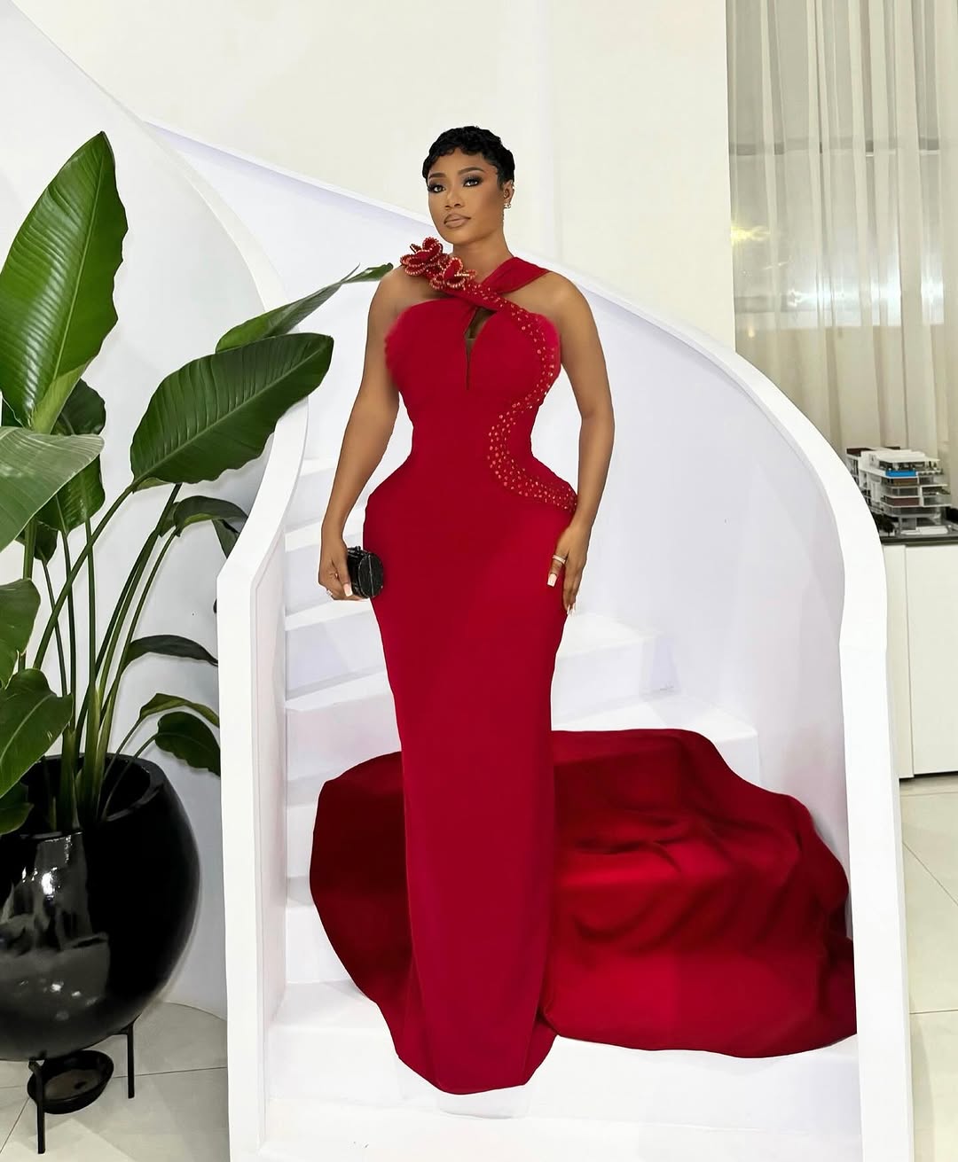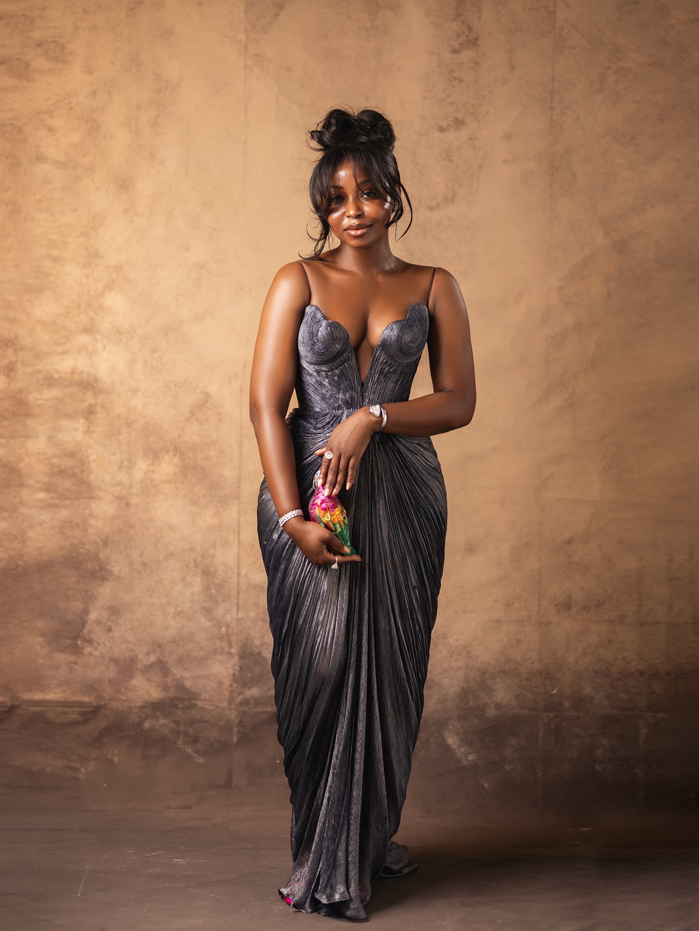 Belle: @kenesgloww | Dress: @stitchesbyandra | Photography: @brown_of_lagos | Stylist: @contentwithrae | Mua: @deoladacosta | Hair: @adefunkeee | Bun styling: @styled_bykbs | Location: @thesocialatelierng