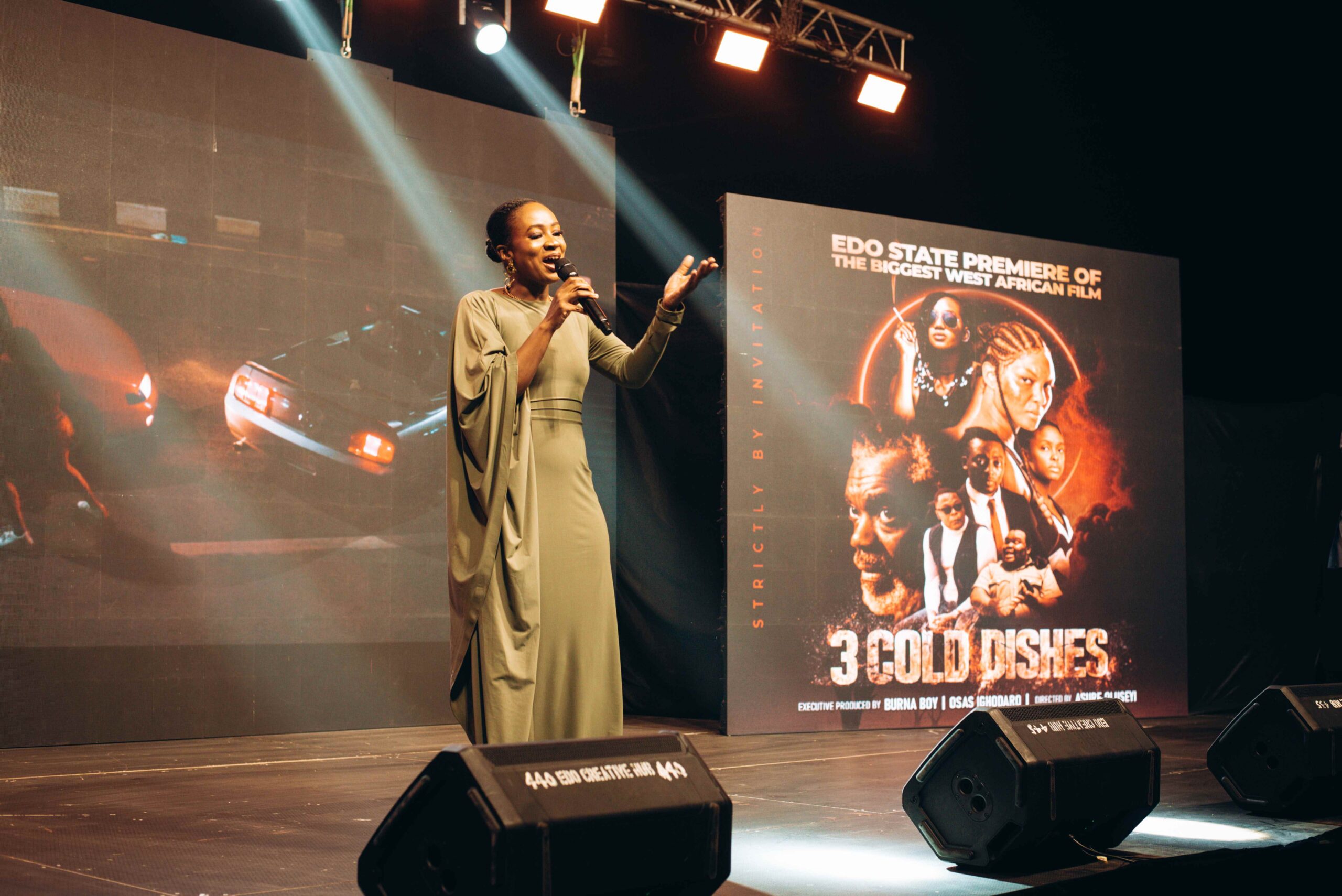 The Edo State Premiere of 3 Cold Dishes at the Victor Uwaifo Creative Hub was a night filled with pride, culture, and deep emotional connection, a true homecoming for Osas Ighodaro, one of the film’s leading stars and a proud Edo daughter.