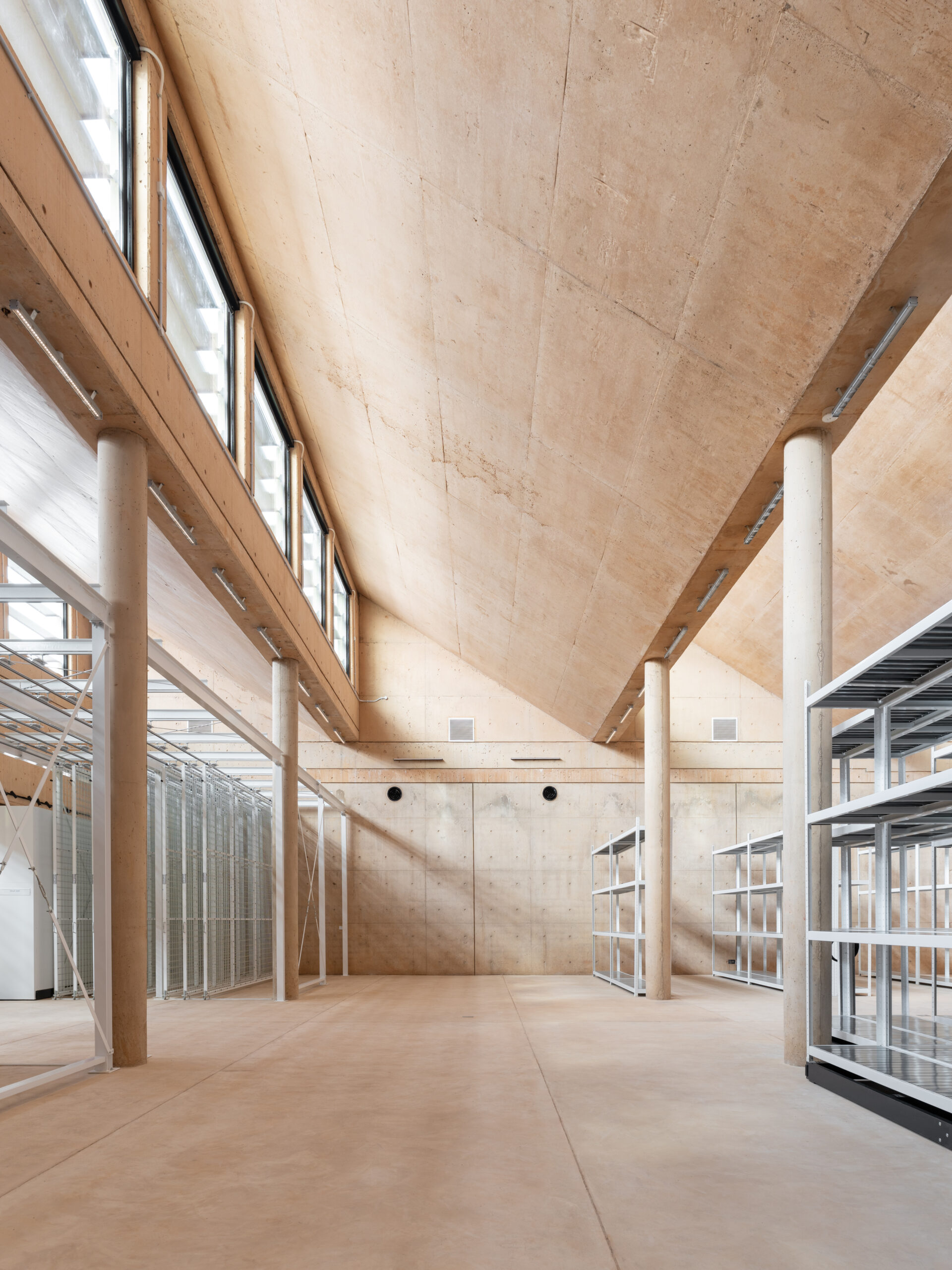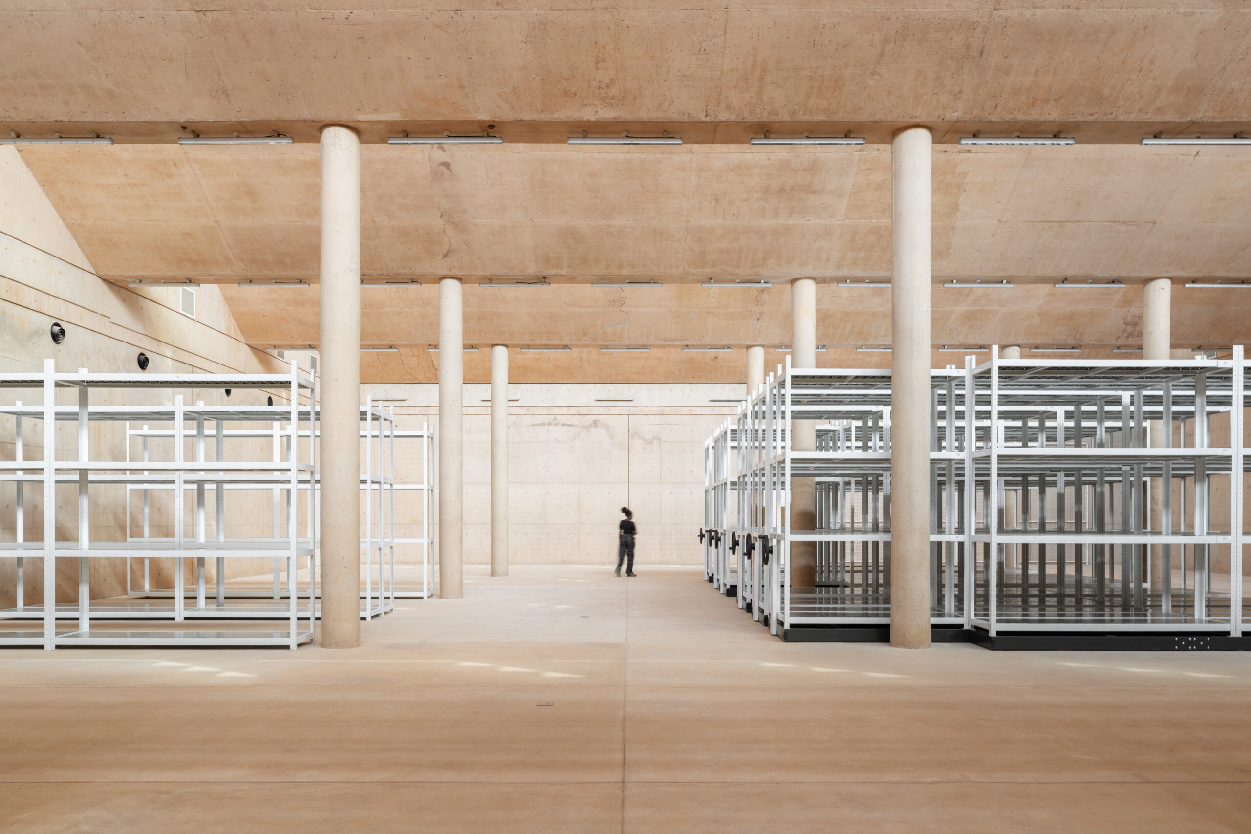 Rather than a public launch or exhibition unveiling, this reveal offers a quiet introduction to the architecture and intention behind the building. The newly shared images highlight rammed-earth walls, expansive storage vaults built to international conservation standards, light-filled studios, and flexible learning rooms shaped for collaboration.