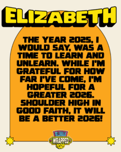 The year 2025, I would say, was a time to learn and unlearn. While I’m grateful for how far I’ve come, I’m hopeful for a greater 2026. Shoulder high in good faith, it will be a better 2026!