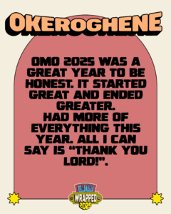 Omo, 2025 was a great year, to be honest. It started great and ended greater. Had more of everything this year. All I can say is “Thank you, Lord.”