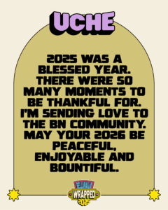 2025 was a blessed year. There were so many moments to be thankful for. I’m sending love to the BN community. May your 2026 be peaceful, enjoyable and bountiful.