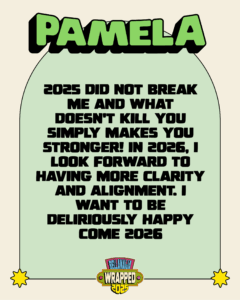 2025 reminded me that even in low moments, there’s still room for magic. From bringing ideas to life to celebrating both the big and small wins, this year has been full of lessons and growth. All of it has set the stage for 2026, and I’m ready to step in with purpose, energy, and excitement for what’s ahead.