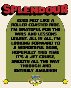 2025 felt like a roller coaster ride. I’m grateful for the wins and lessons learnt. All in all, I’m looking forward to a wonderful 2026, hopefully this time it’s a jet cruise, smooth all the way through and entirely amazing!