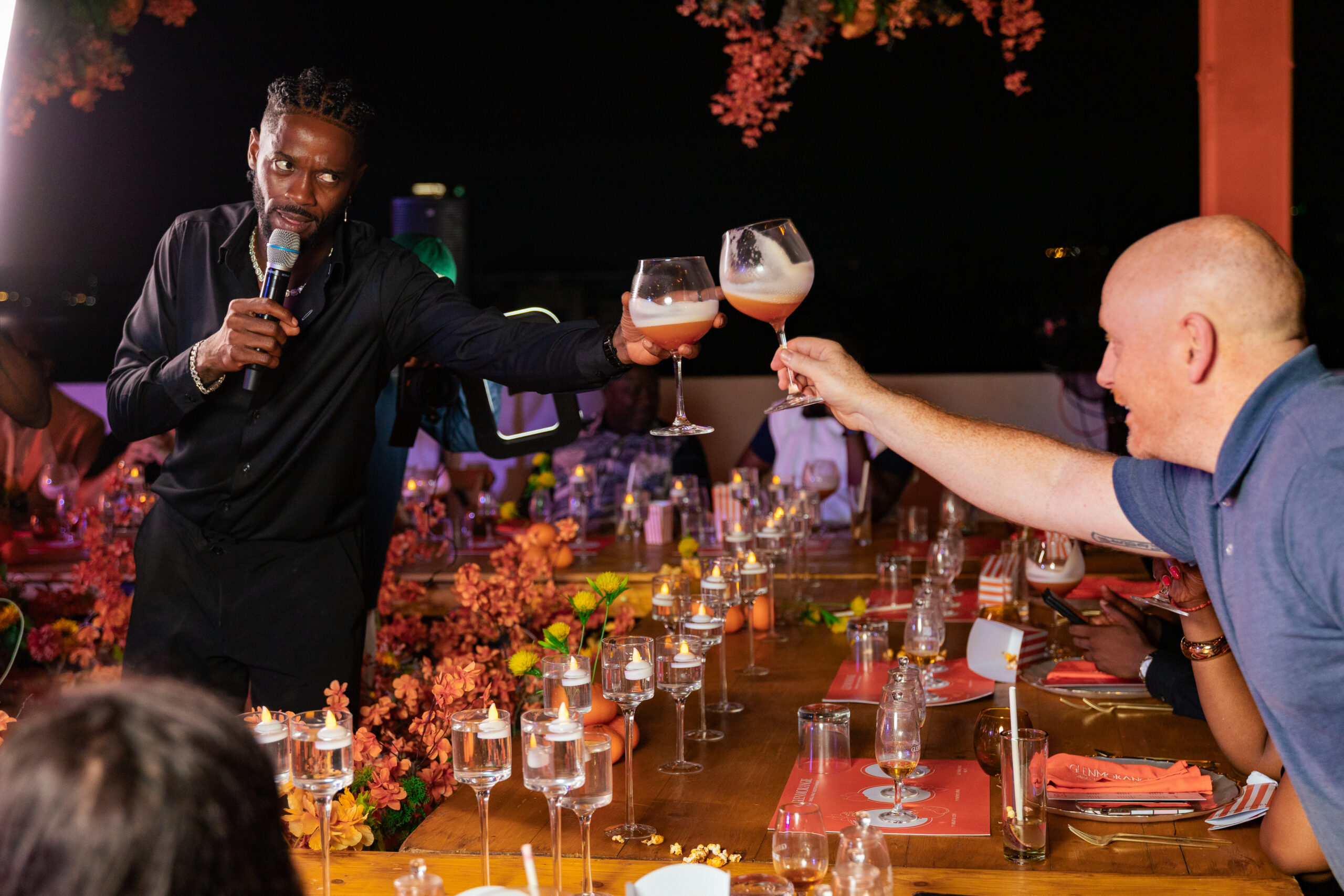 The celebration continued with an exclusive rooftop dinner at the Moët Hennessy Penthouse, Ikoyi. Against the Lagos skyline, industry leaders, influencers and celebrities—including Dare Art Alade, Wale Ojo, Fola Davids and Uti Nwachukwu enjoyed an immersive art exhibition, “The Valley of Tranquility” by Alex Ash, weaving Glenmorangie’s signature orange hue into a visual narrative of harmony.