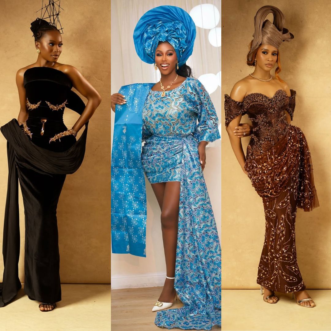 While the story has us curious, the premiere itself gave us even more to talk about. When the title of a film is “Oversabi Aunty,” you already know the fashion would not be quiet. Guests arrived dressed boldly and unapologetically, leaning fully into a sense of excess that felt fitting for the occasion. There were high, sculptural geles in all kinds of styles, shiny lace fabrics sewn into iro and buba and other creative silhouettes, as well as flowy agabadas finished with generous embroidery.