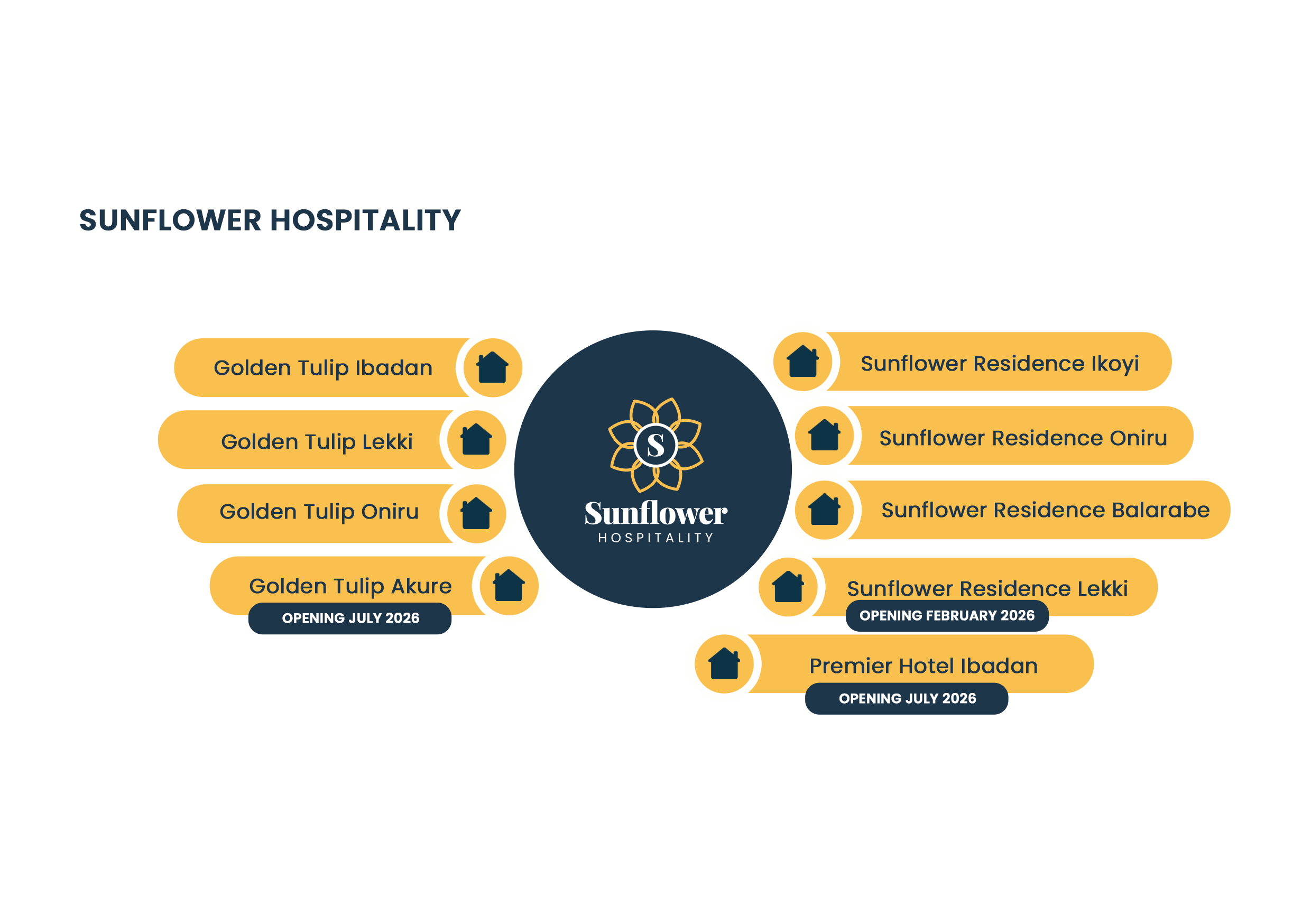 Sunflower Hospitality is a Hospitality Development and Management Company overseeing a portfolio of well-managed hotels and serviced apartments across Lagos, Ibadan, and Akure.