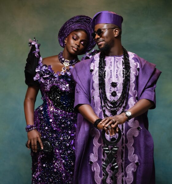 Prudent Gabriel & Okopi Peterson Mark Their First Traditional Wedding Anniversary in Stunning Purple Style