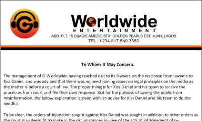 G-Worldwide Entertainment has made available to Pulse the court declaration in its case against singer Kiss Daniel. It had been revealed on Tuesday that G-Worldwide had...